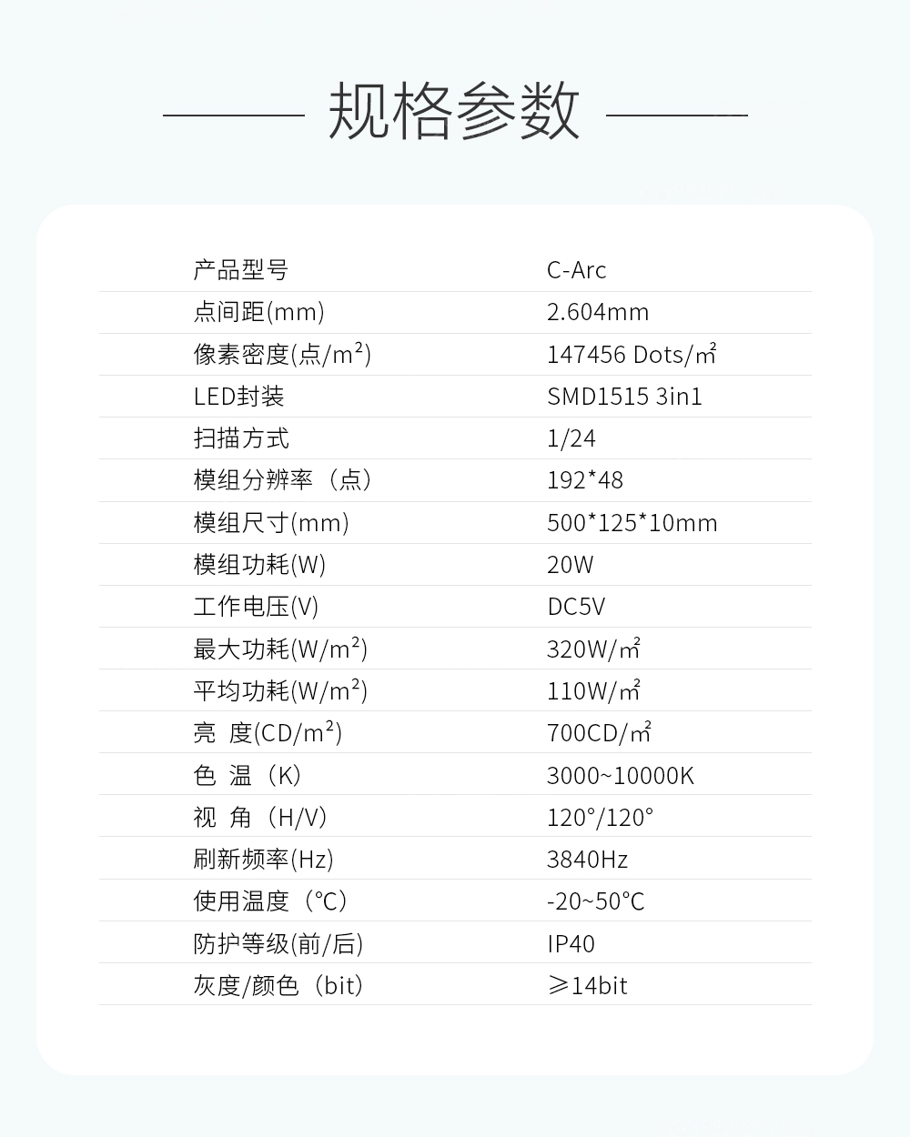 6 高清显示:色彩白平衡逐点校正,保证显示画面一致性和均匀性;