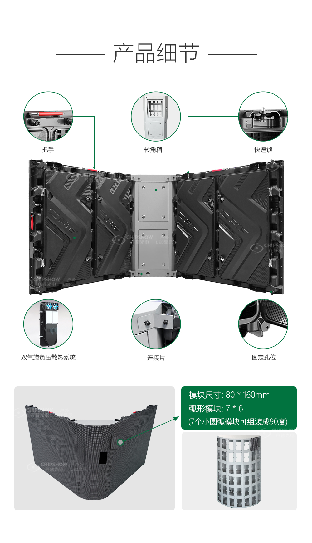 9. 弧形转角部分350vip浦京开了一个特殊弧形模组,弧形转角箱体用钣金做,两直边用350vip浦京的  C-Fit P6.667  960X960压铸箱体做。