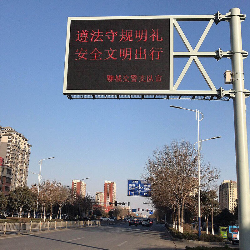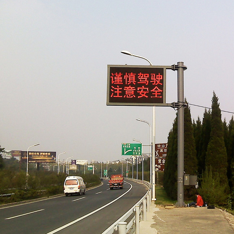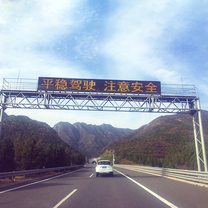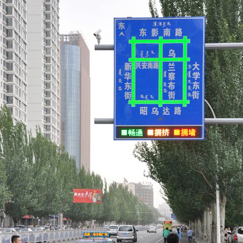 城市交通诱导屏是根据交管部门的具体使用要求实时在信息标志板上发布 交通状态信息。如道路封闭、突发事件、车道拥挤、停车泊位等信息。